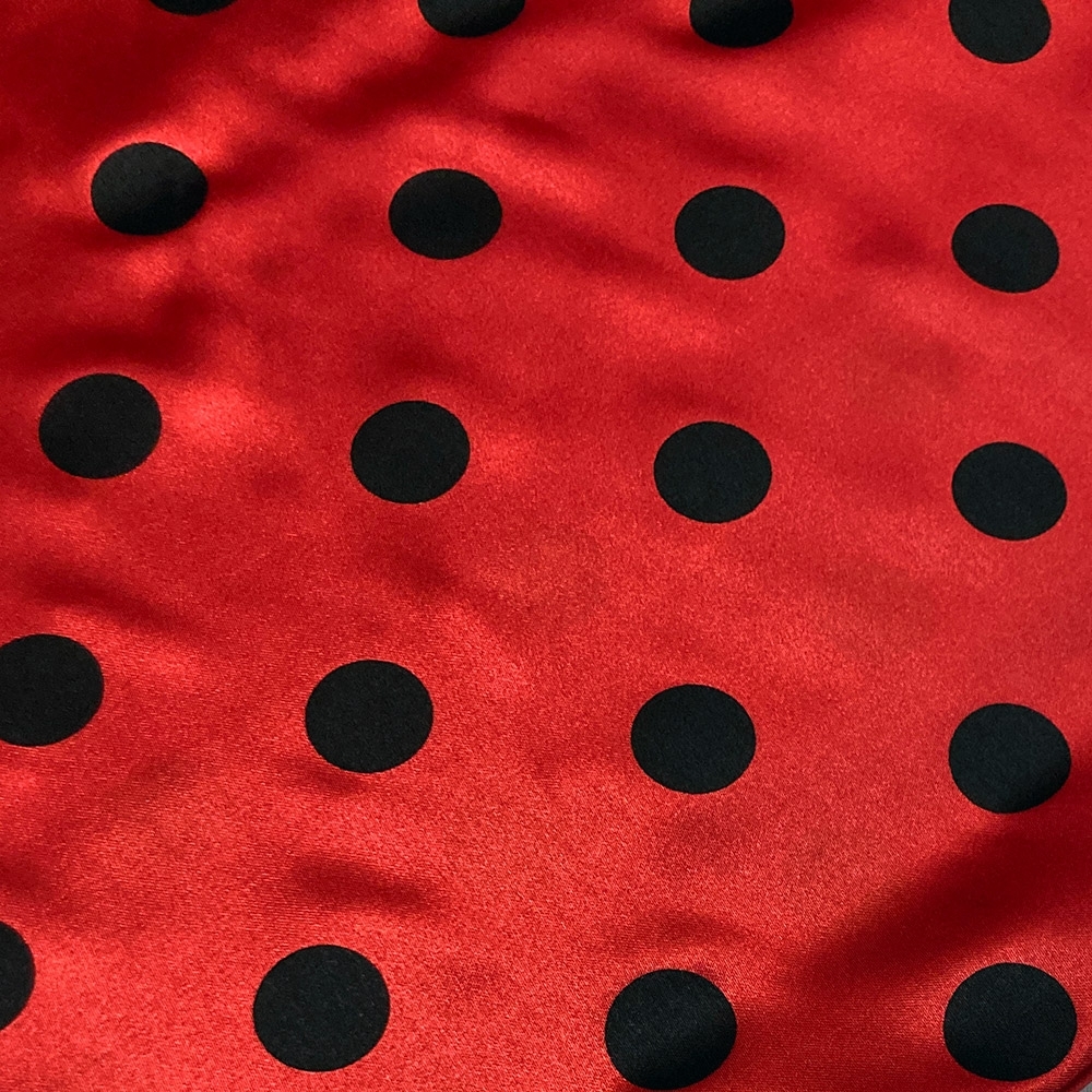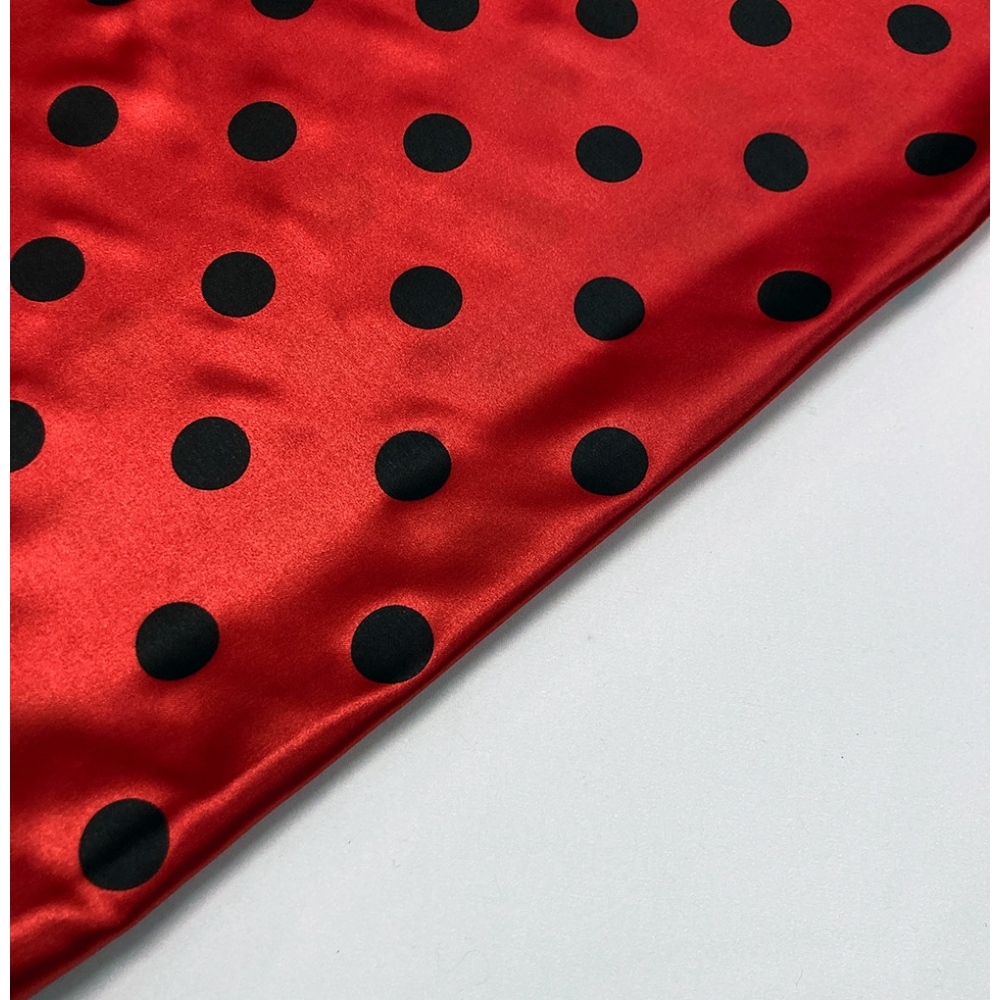 TESSUTO RASO CARNEVALE ROSSO POIS NERO